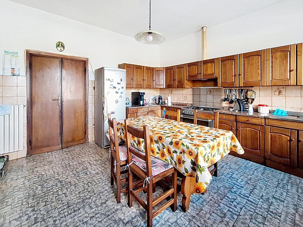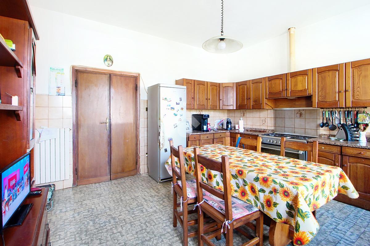 Attraverso un vano scale si accede nella zona giorno, composta da soggiorno separato da cucina abitabile e comodo ripostiglio.